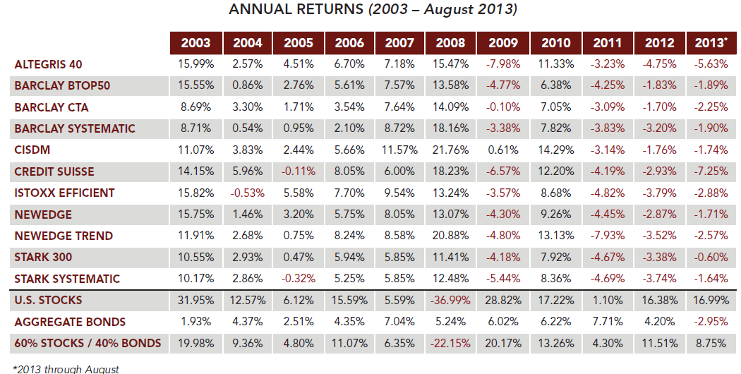 They trail the markets AND have negative absolute return over 10yrs