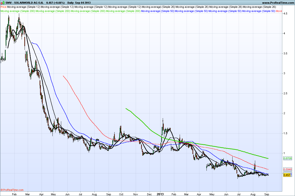 Para primeiro embate fica a SWV. Uma das solares germânicas, que ainda resiste à falência. No entanto a forte concorrência asiática e a consequente quebra dos preços dos equipamentos, está a traçar um rumo mortal para esta acção.