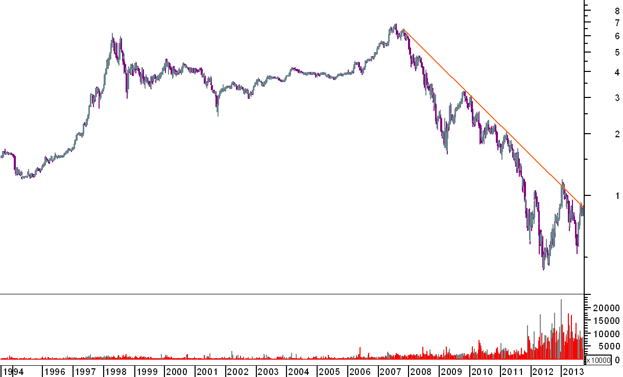 Finalmente alguém menos pessimista.... concordo que esta acção até ao final do ano têm potencial para ir aos 1,10/1,20, naturalmente dependente de toda a conjuntura externa... Siria, Merkel, Défice, Orçamentação, etc... e como havia referido atrás tambem acho que os 0,80 se têm mostrado um bom suporte, naturalmente, que se o quebrar irá aos 0,7, não quebrando têm o potencial de ir tentar os 0,90/0,92 outra vez.... e quem sabe rasgar desta vez