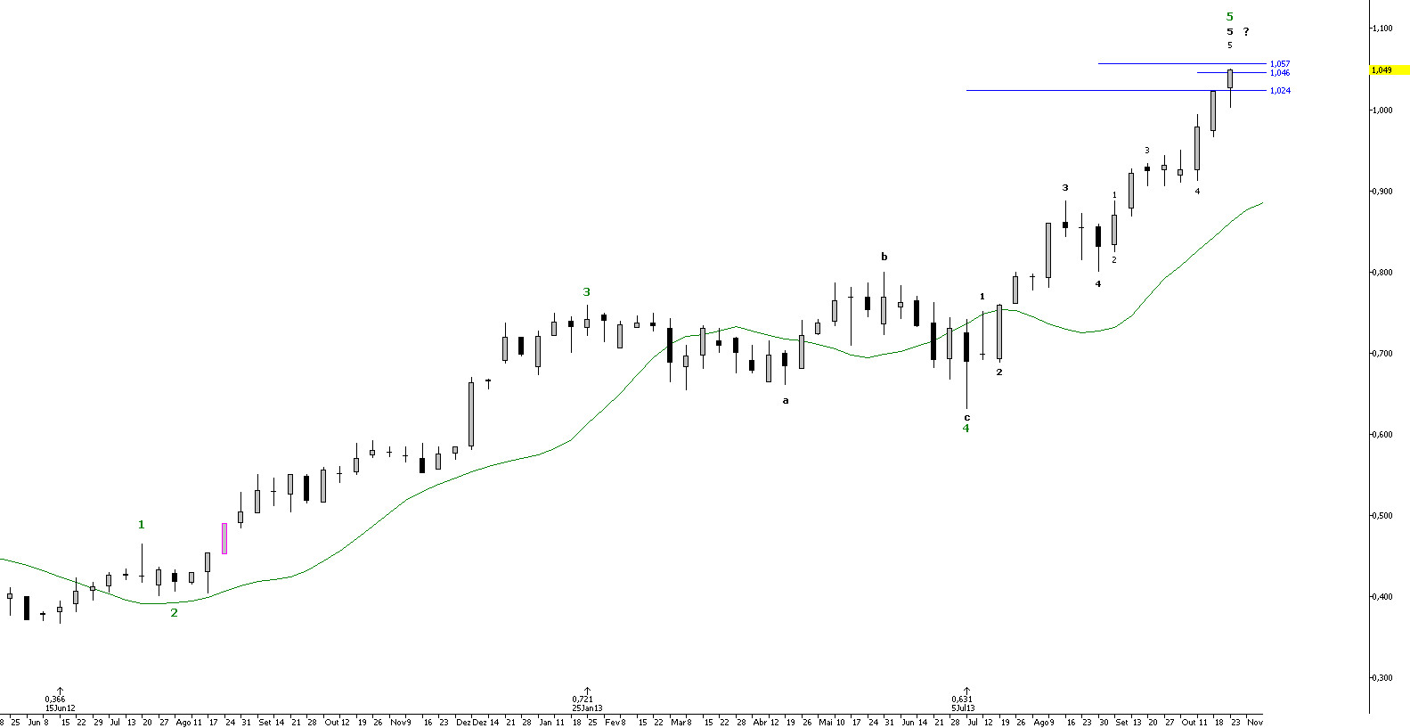 Com uma zona alvo muito prematura de correcção entre os € 0,800 - 0,631.