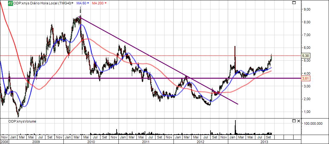 , a ODP está a cotar numa zona de resistencia importante. Os 3,60$ são um valor importante na definição de médio-longo prazo do título. Este valor já foi por diversas vezes resistencia ou suporte, o que atesta a sua real importancia.