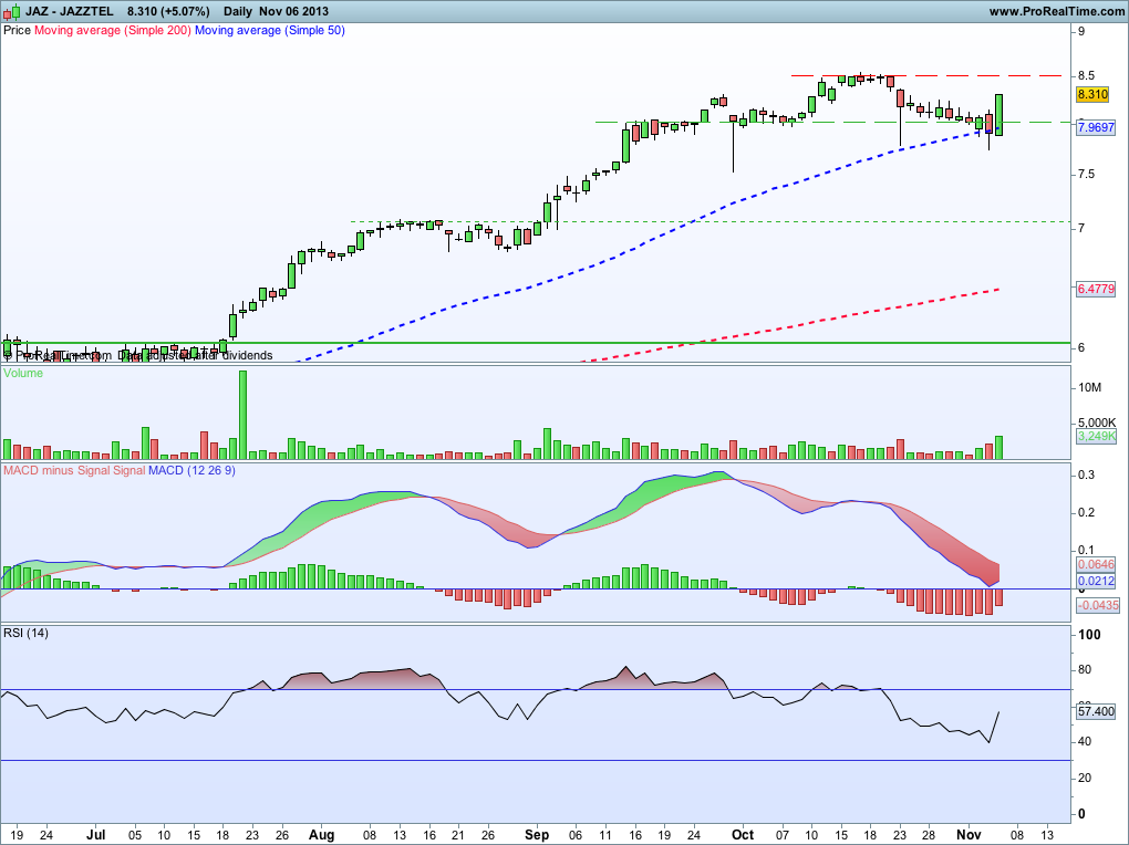 Houve uma conferençia de imprensa, em Madrid, e estavam todos á espera de uma bomba, por isso antes da dita subiu até aos 0,310 mas como o que foi anunciado era apenas uma nova campanha de marketing desceu até aos 0,298. Aproveitei esta descida e entrei a 0,303 porque não só já andava com ele debaixo de olho á algum tempo assim como acho que está muito subavaliada. A próxima resistençia, segundo analistas, será nos 0,327. Vamos esperar para ver.
