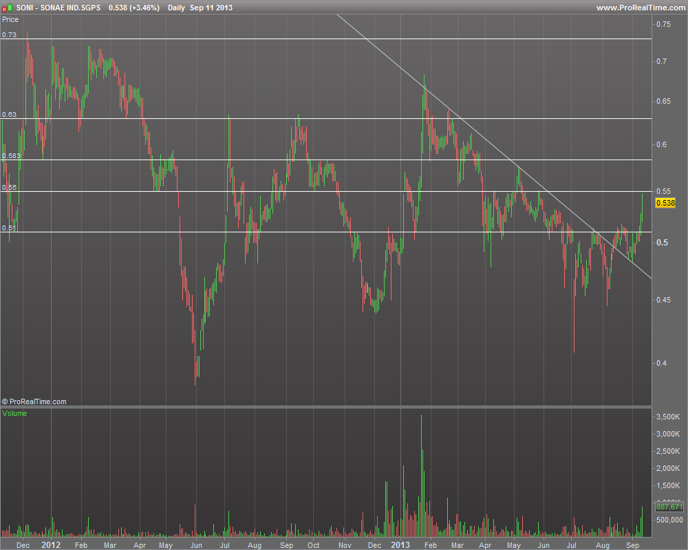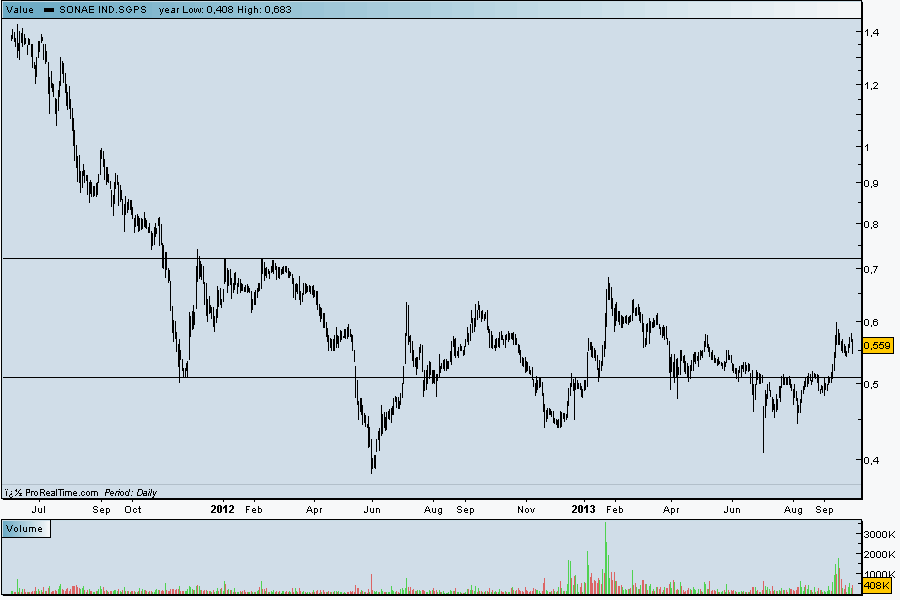 A SONI poderá encontrar ulguma resistência na zona dos 0,56€. Já serviu de suporte e resistência...