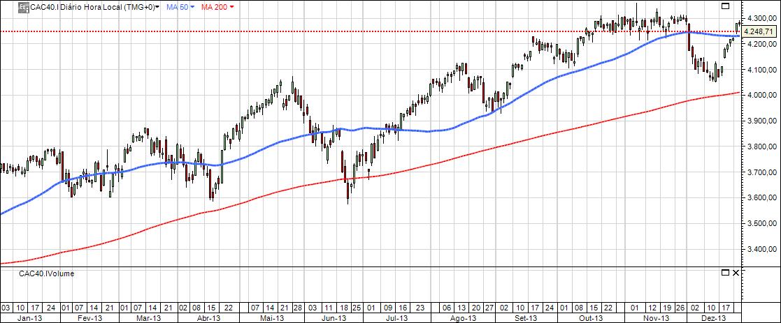 Cac 40 - Abriu a 3703.94 e fechou o ano nos 4295,94 pontos. Subiu 15,98%