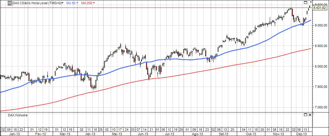 Dax30 - Iniciou a 7689,41 pontos e fechou o ano nos 9571,13 pontos. Subiu 24,47%