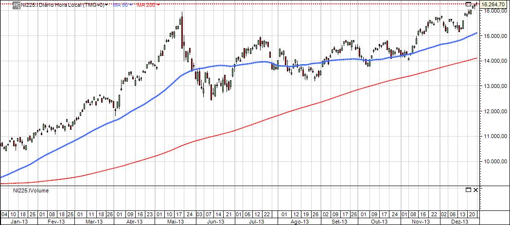 Nikkei - Abriu a 10688.24 pontos e fechou nos 16264,70. Um ganho de 52,17%