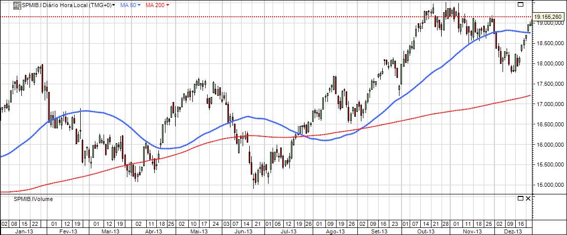 Itália - Começou nos 16583,47 pontos e fechou nos 18967,47. Subiu 14,37%
