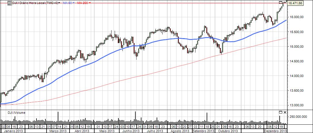 Dow Jones - Abriu a 13104,34 pontos e fecho o ano nos 16575,31. Subiu 26,48%
