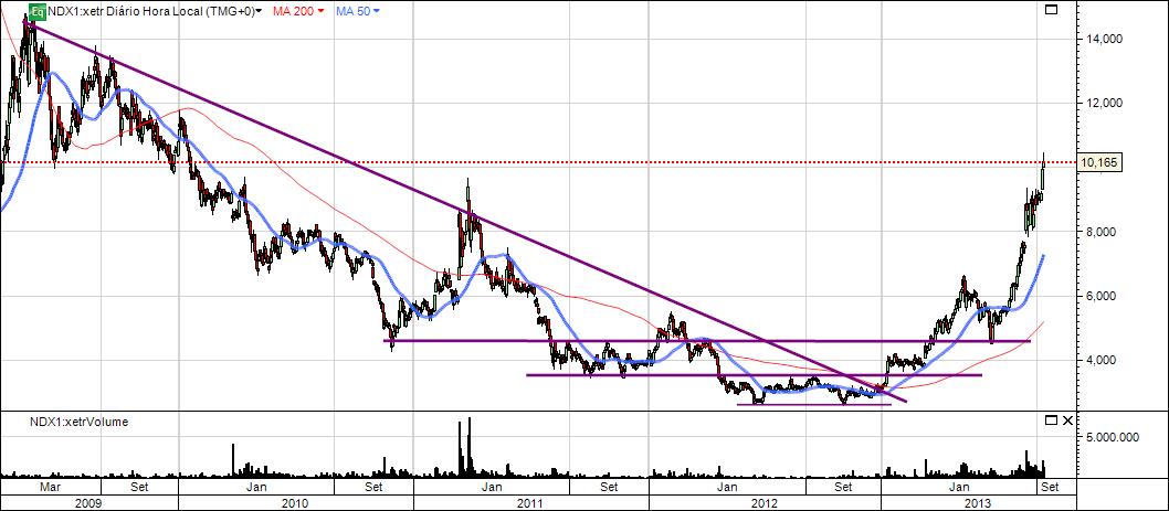 Dos 3€(ultimo fecho de 2012) aos 12€, 400%.