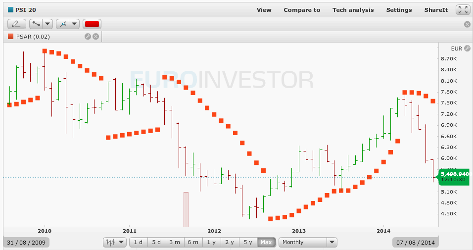 Para mim basta-me o PSAR no gráfico mensal do PSI20. Não há dúvida: bear e bem bear. Isto durante 1 ano ou isso a tendência parece-me de queda.