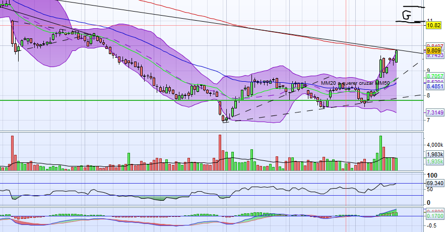O curioso é que hoje fez um ressalto aos 8,74, vamos ver se aguenta acima resistência e passar a suporte