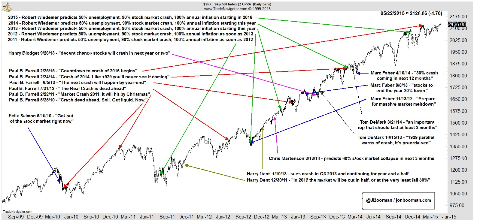 Algures no tempo quem prever um crash ou uma hipervalorização vai estar certo, agora os mercados fazem-se em 95% do tempo por evoluções paulatinas e não radicais (Pessoas como Nouriel Roubini acertaram no crash de 2009).