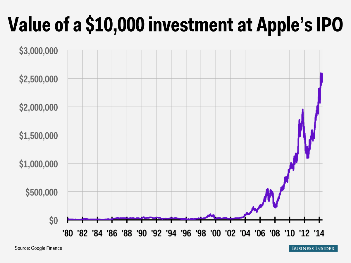 II - Na Bolsa existem 2 casos exemplares de 250baggers ///Gilead e Apple: Quem investisse 10.000 dollars no IPO teria hoje 2.500.000 dollars (gráfico)