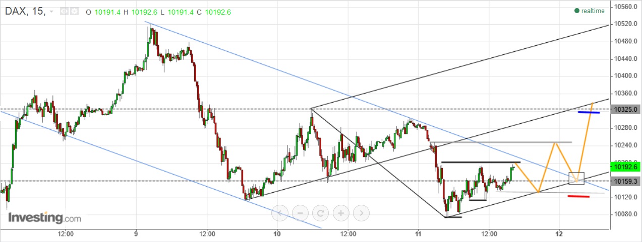 gráfico 3: uma hipótese de OE num gráfico de 15 min, caso o preço faça algo daquele género. a fork ascendente desse gráfico parece-me estar a ganhar coerência e, por essa razão, é uma possibilidade forte que o preço se dirija novamente à sua ml.