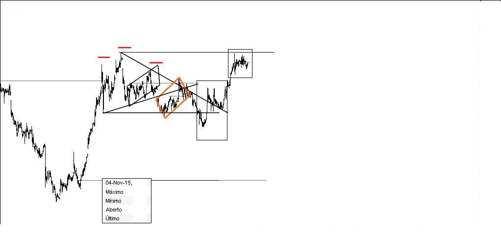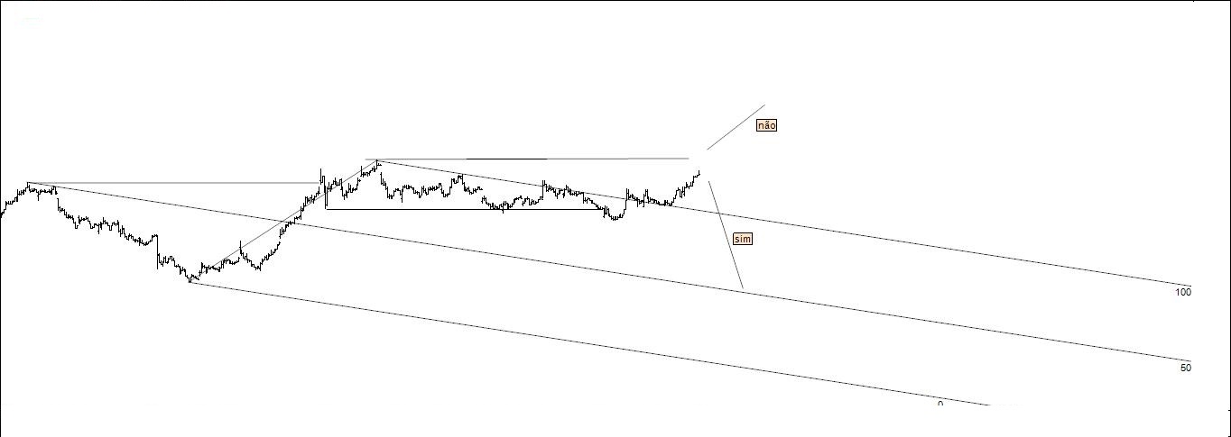 Uma vez chegado à zona aguardada, esperava os sinais e confirmação pelo preço para seguir o sentido do movimento, como não passou no meu filtro aguardei e não segui o impulso de seguir a "tendência", o que aconteceu? O preço retornou à "gaiola" e dela saltou indicando a direção final? Isso veremos daqui a algum tempo, pois só se passar nos filtros é que se mete guito na brasa, o tempo de seguir impulsos já lá vai, finalmente..... agora mexidas de 5%, 10% ou até mais não me fazem cocegas