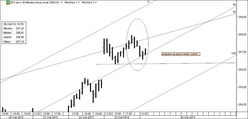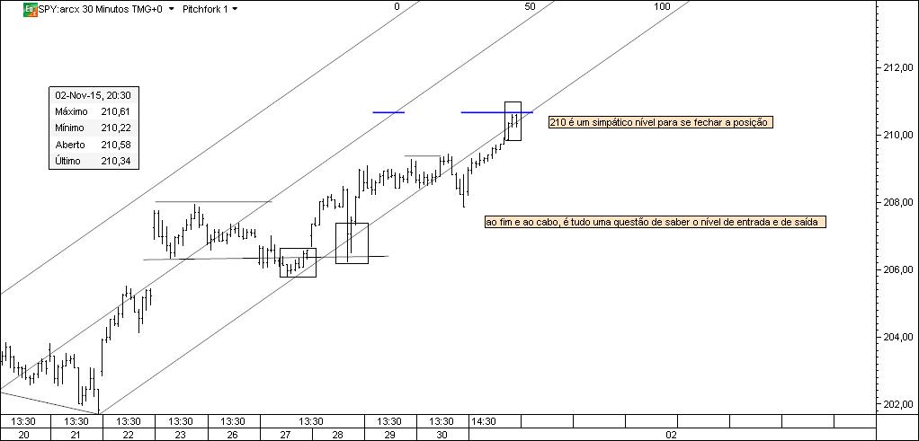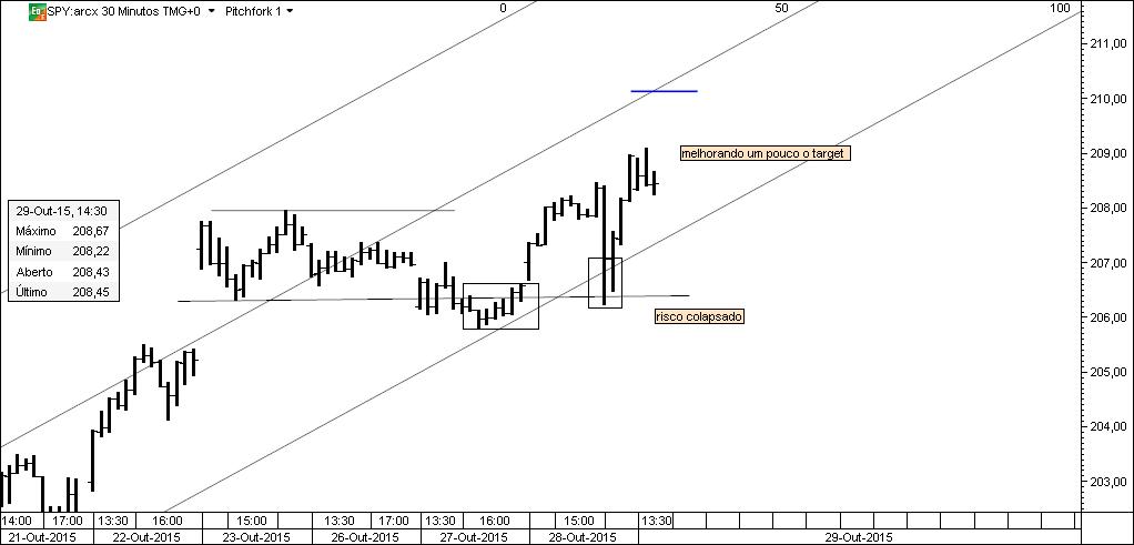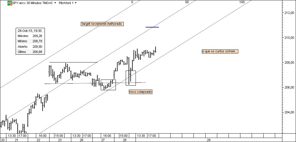 Chegou a vez de partilhar uma nova situação, agora no SPY. Os gráficos contêm todos os comentários que a situação exigia e foram datados para que não se coloquem dúvidas. O que se passou no SPY pode ser replicado no cash e nos futuros do SP500. Qualquer relação entre este negócio e "parte cógnita do Caldeirão" é pura coincidência.