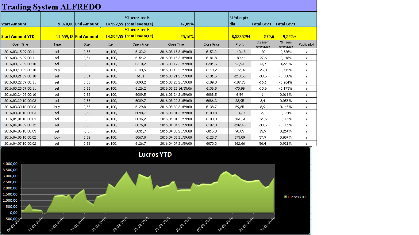 Certo, se começar a perder começa a investir cada vez menos e se ganhar começa a arriscar cada vez mais... Assim, consigo ser agressivo e reduzir ou mesmo anular a possibilidade de ir à falência. Para tal acontecer teria que perder tudo num dia o que, com o leverage que uso teria que ter uma variação desfavorável no índice de 30% num dia o que tal nunca aconteceu...