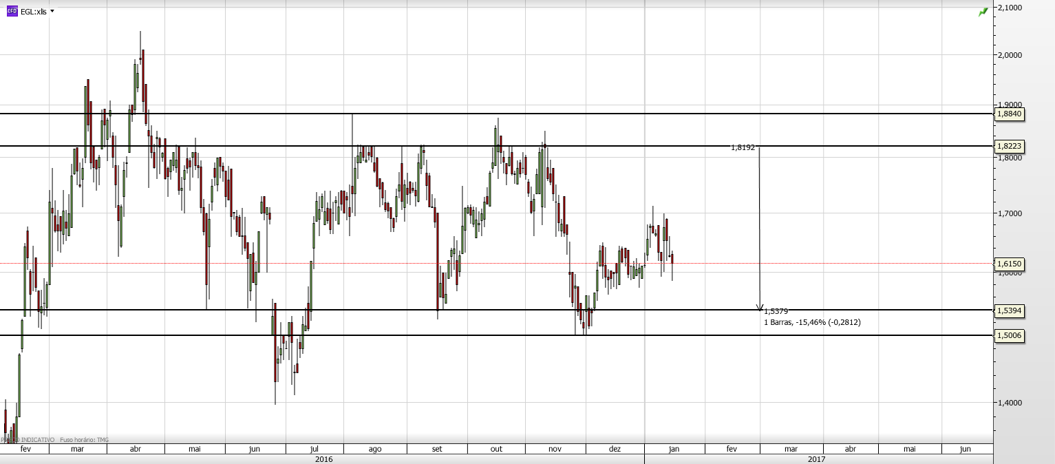 Abaixo dos 1,50, poderá significar valores futuros mais baixos e um cenário potencialmente mais complicado para o titulo .