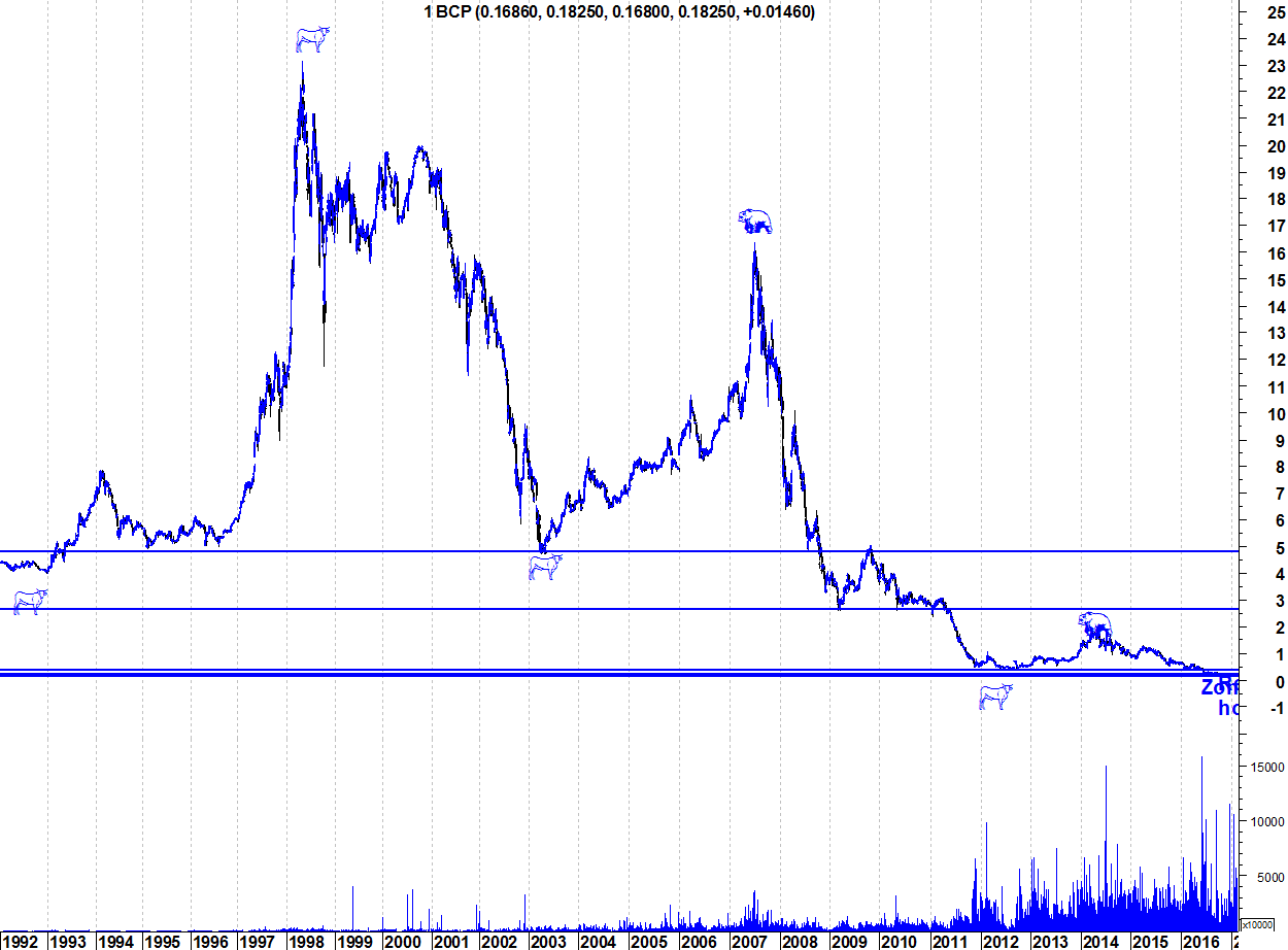Sendo eu um "velho" optimista em relação ao BCP resta a esperança que um dia as coisas invertam de vez a favor dos touros. Diria que o BCP está pelo menos uns 30% mais forte com a entrada dos novos accionistas (institucionais) e a ver se isso e algumas boas noticias possam vir a ajudar ao estabelecimento de uma tendência Bull de médio/longo prazo.