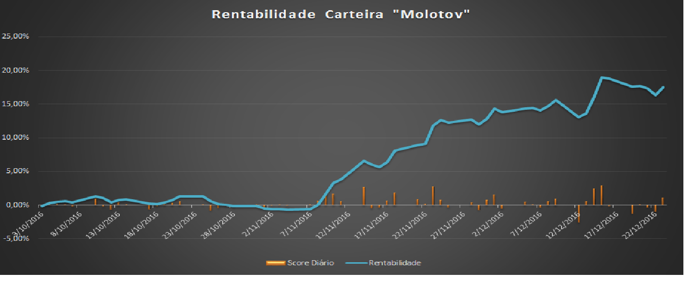 - Rentabilidade obtida ROE: +17,5% (gráfico da “Equity Line”)