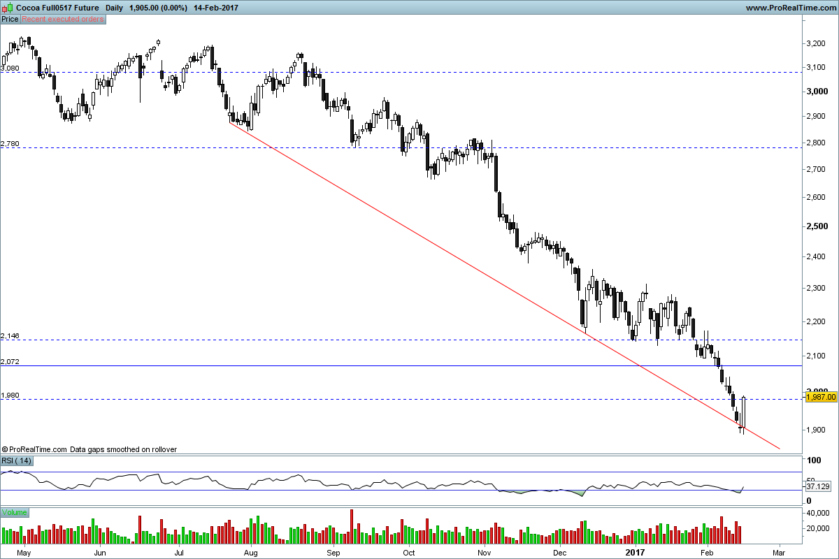 Depois de lateralizar desde Setembro de 2013, quebrou o rectângulo em baixa no final de 2016 tendo atingido ontem um mínimo de 1881$ - temos de recuar a 2007 para encontrar tal referência.
