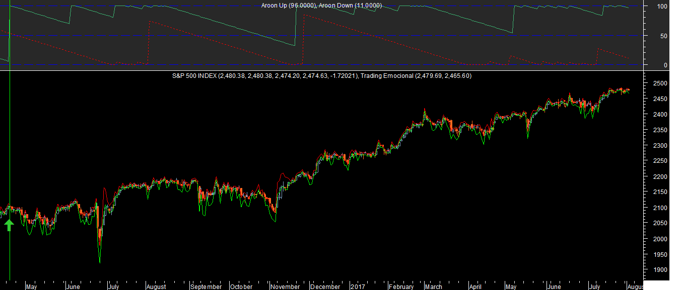 De todos os modos o Aroon de 100 períodos nao deixa de ser uma ferramenta de auxílio interessante, embora na minha ótica tenha de ser complementado com mais informaçao, para detetar boas tendências nos mercados em geral.
