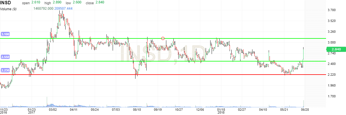 Nos últimos 3 meses a Inside Secure tem feito uma lateralização, e o volume tem sido bastante reduzido.