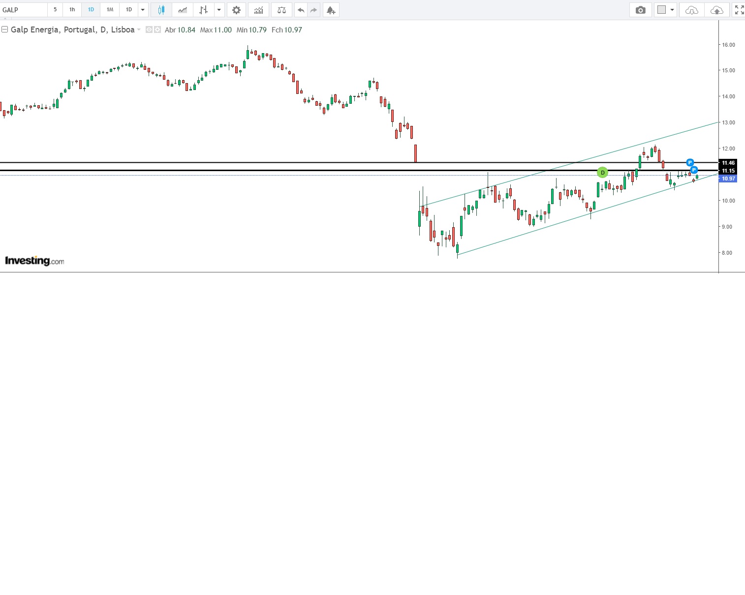 Olá Leónidas, creio que o canal está bastante bem desenhado. Mão sei se aquelas resistências são tão relevantes, diria que é mais importante - em termos de curto prazo - a zona de suporte ali na zona dos 10,5 euros, mas claro já é a visão técnica de cada um.