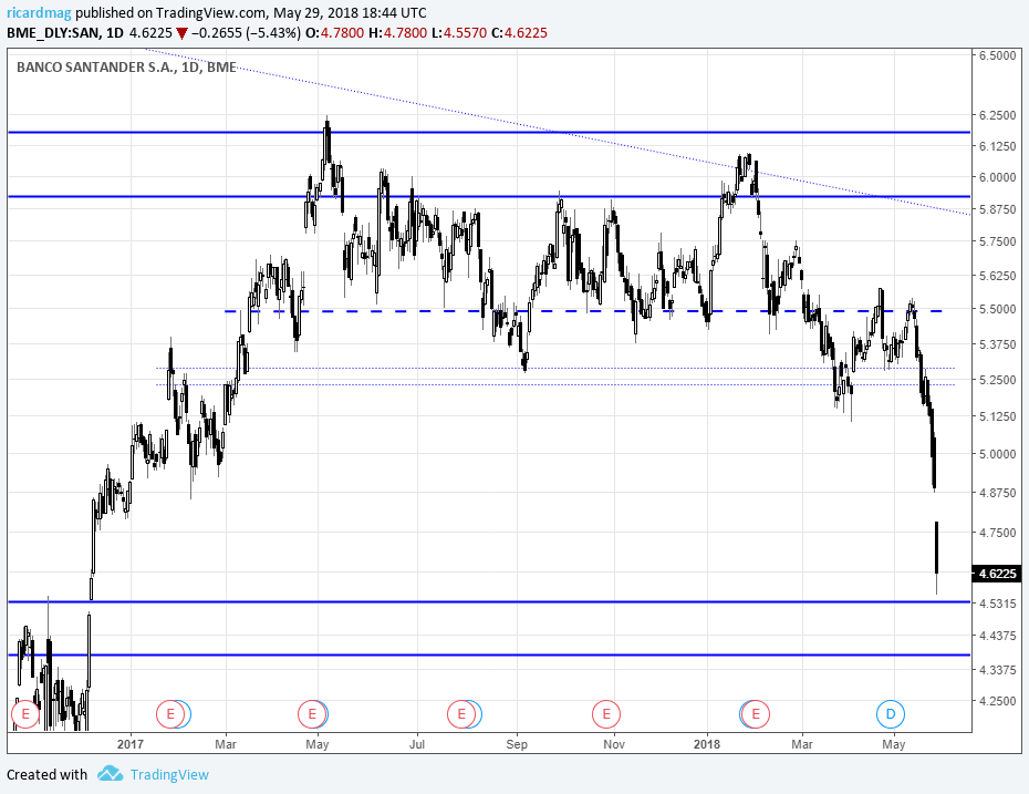 O Santander parece-me andar a ser castigado em demasia pela turbulência em Itália. Actualmente tem um PER para aí de 11. Está num suporte... Ando com a pulga atrás da orelha para entrar...
