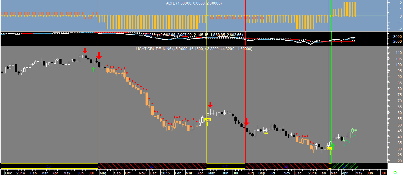 A razao de tal paradoxo reside na identificaçao de um mercado do tipo oscilatório e ainda nao tendencial na altura em que o sinal de compra na escala semanal foi disparado, ao contrário da escala diária em que o sistema terá assimilado o provável começo de uma tendência ascendente.