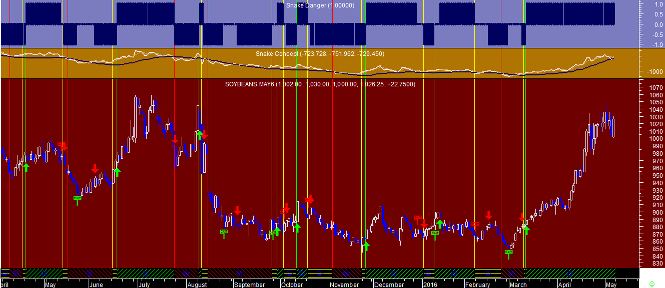 Curiosamente o sistema em causa foi mais rápido a aperceber-se do potencial de subida da Soja na escala Semanal (3 de março), coincidente com uma vela que marca o mínimo de um swing que é quase o mínimo anual da Soja, do que na escala diária em que o último sinal de compra só aparece mais de uma semana depois (11 de março).