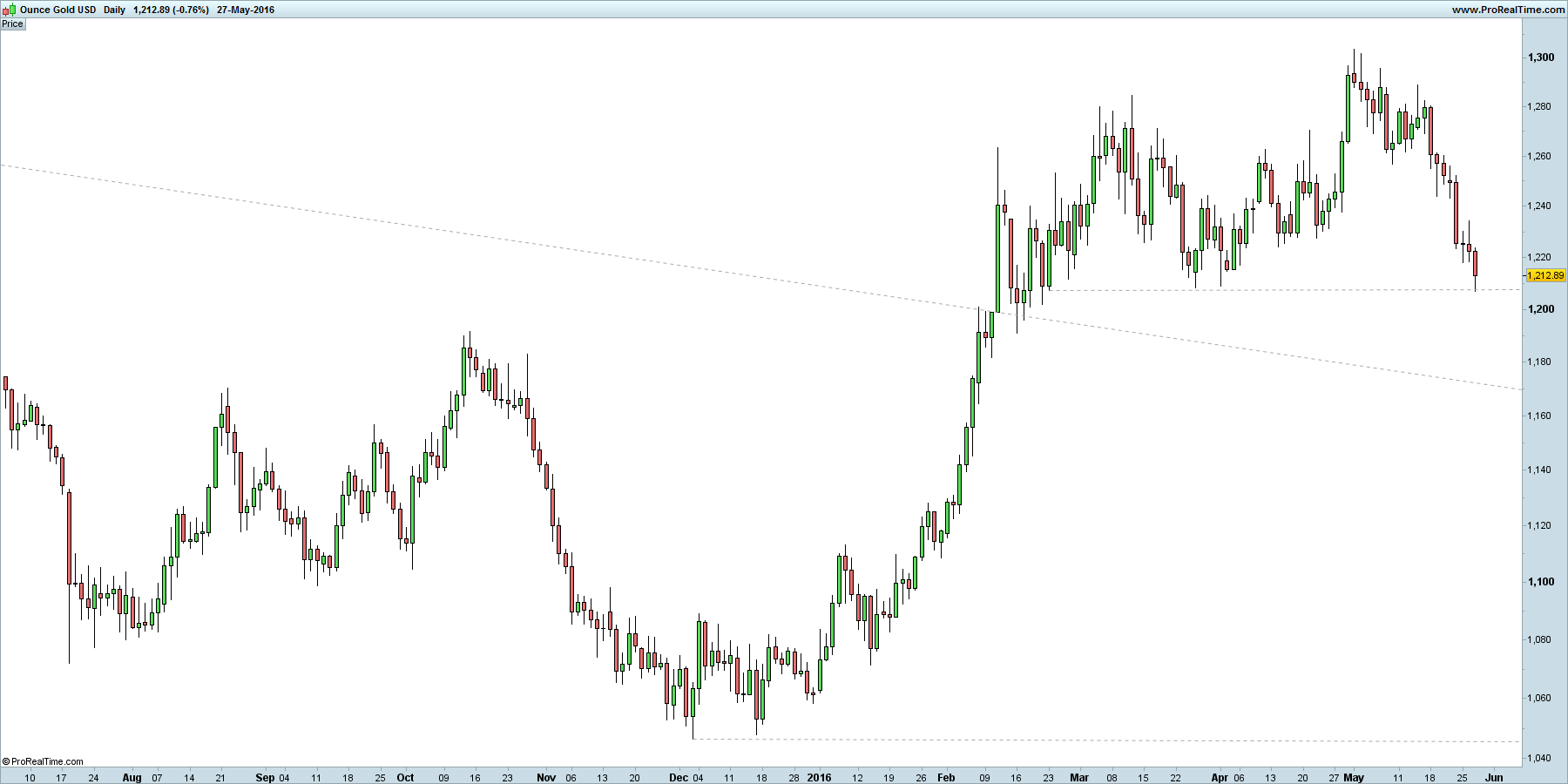 há já uns meses que o ouro teima em lateralizar sobre uma zona de suporte local
