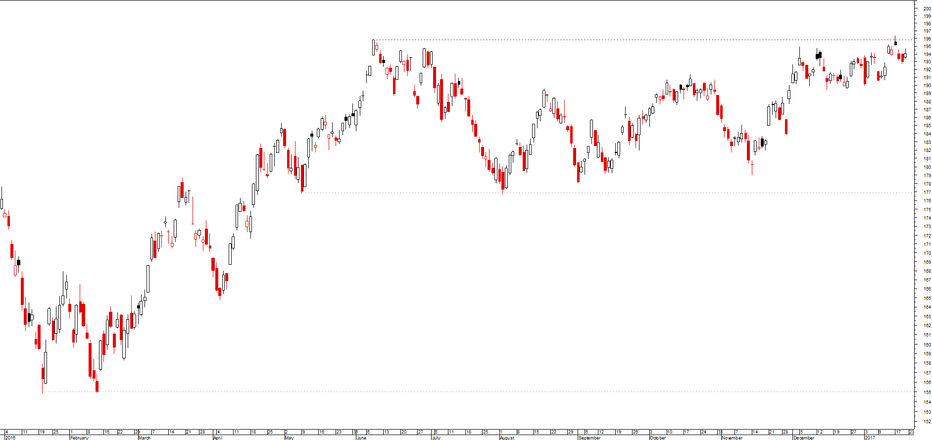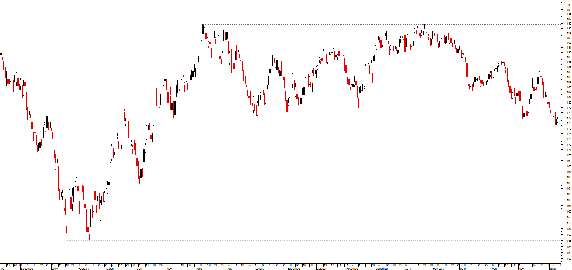 o índice oscilou entre os 17X e os 19X, de momento testa o suporte dos 17X e caso quebre tem um apeadeiro nos 16X e suporte na zona do duplo fundo