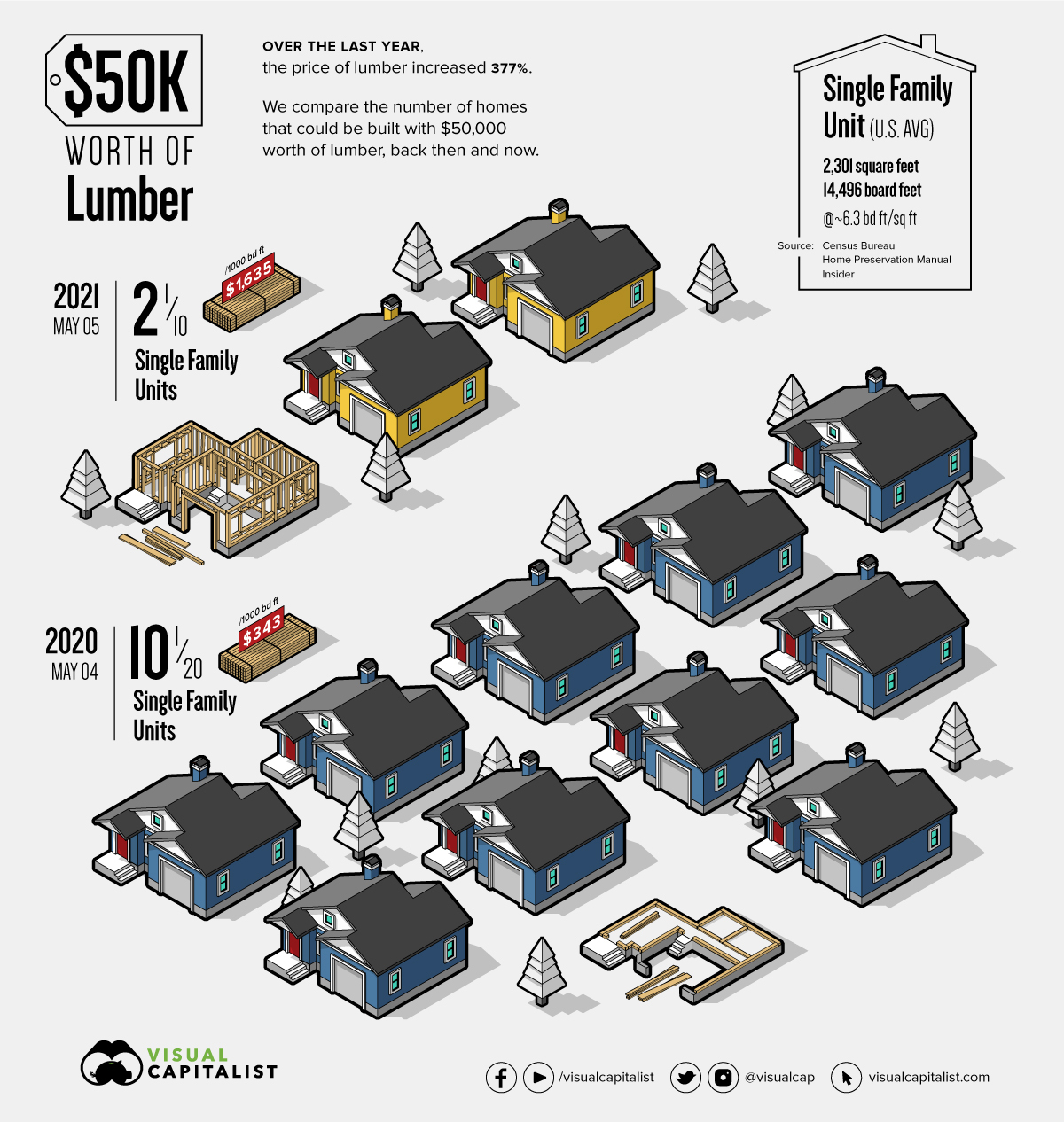 Inflação (4,2%) a níveis recorde de 13 anos (a tocar no nível do malfadado ano de 2008). Preço das commodities a disparar, cobre nos 36%, alumínio sobe 24%, madeira a subir 123% year to date ou 337% em 12 meses (ver infra), Crude oil só sobe 9%, mas à espera do reforço do conflito no Médio Oriente para disparar.