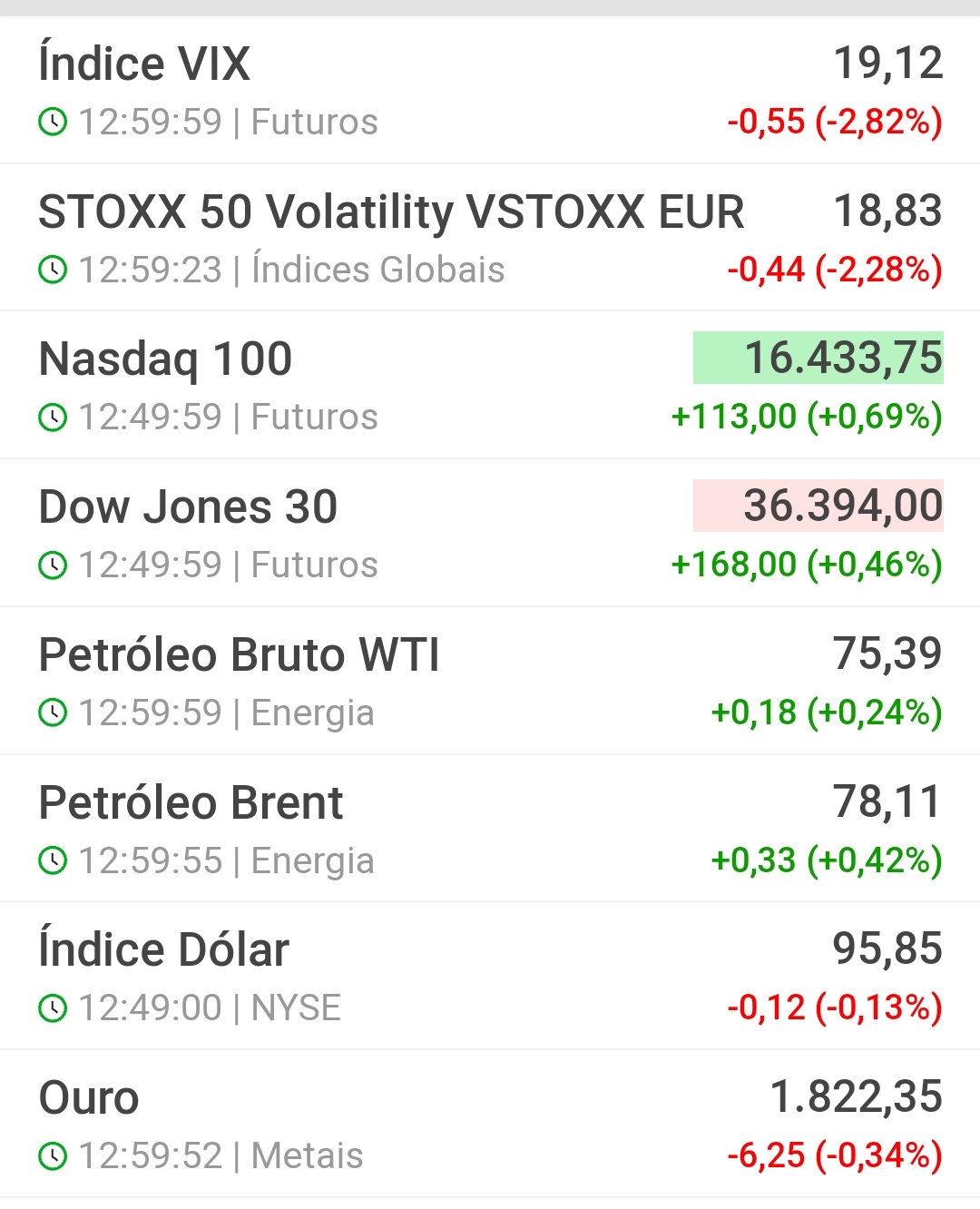Dia 09/12/2021 (antes da abertura de NY)
