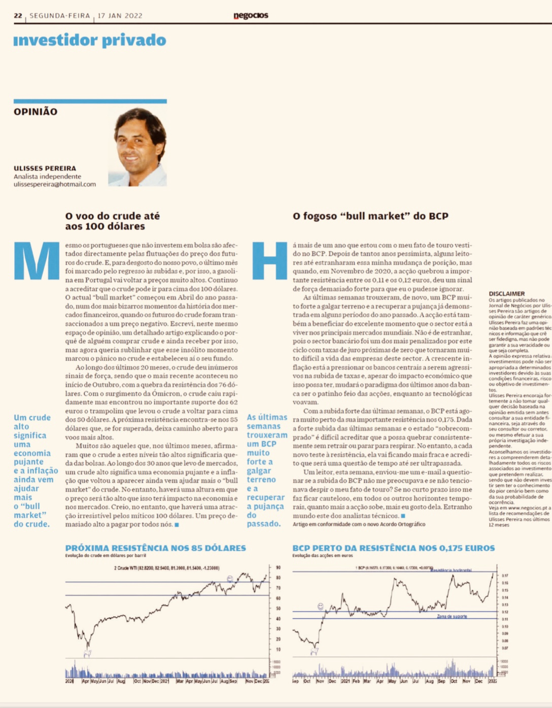 O petróleo (WTI) até poderá ultrapassar os 85 USD (levado ao colo pela inflação americana). Poderá mesmo chegar aos 100 USD. Mas investir no petróleo é estar no lado errado da História.