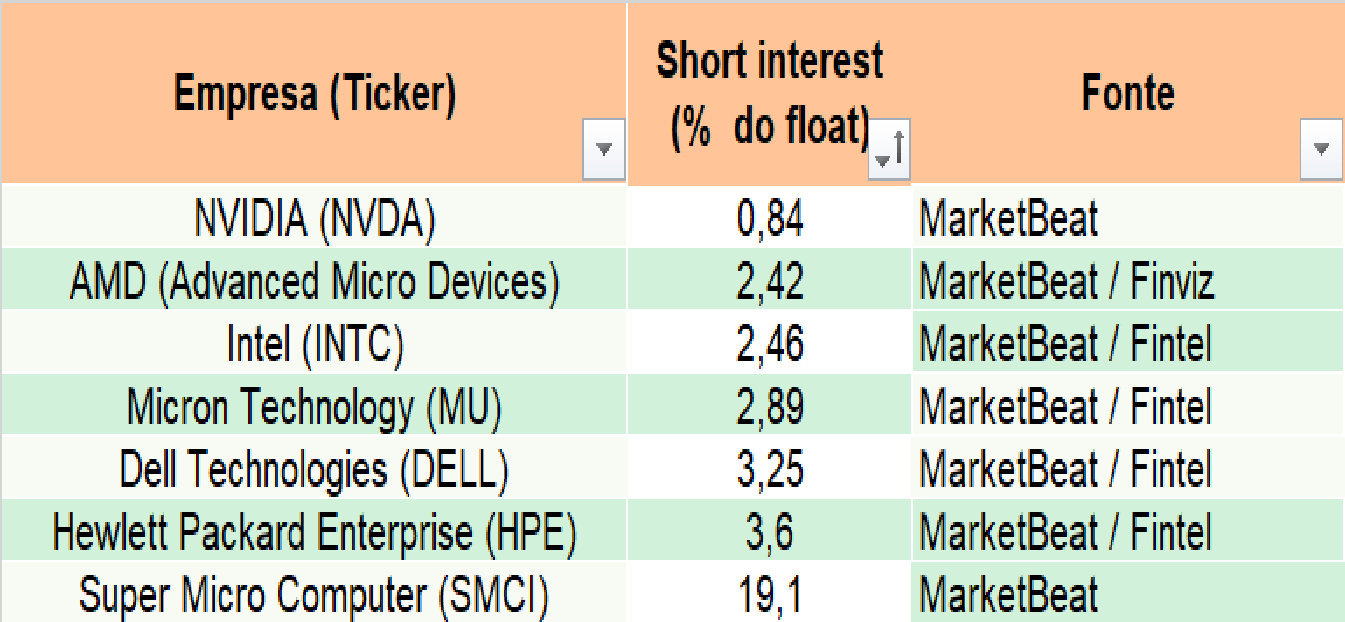 Um Short Interest à volta de 20% do free float da SMCI é considerado como muito elevado quando comparado com a média do mercado e com os pares do setor.
