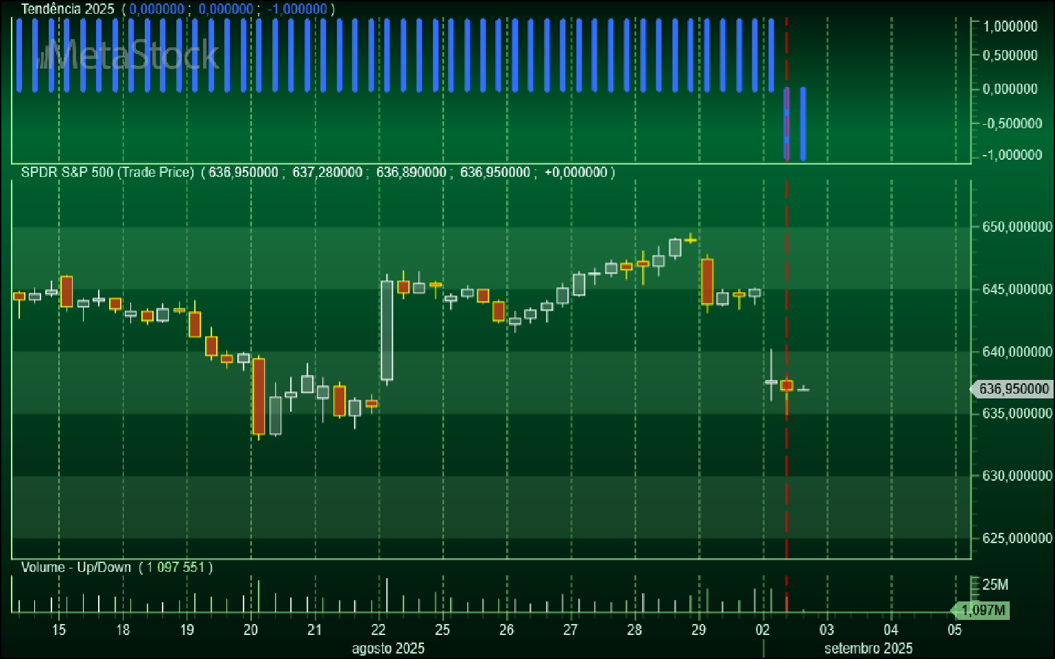 O caso do S&P 500 é o meu foco pessoal no trading porque se trata dum ativo com muita elevada liquidez, diferenças muito pequenas entre comprador e vendedor, comissões muito baixas e volatilidade muito estável com poucos gaps anti-posicionais que não obrigam a fechar contratos no final de cada sessão, propiciando um ótimo nível de confiabilidade nos indicadores utilizados em qualquer das escalas negociadas.