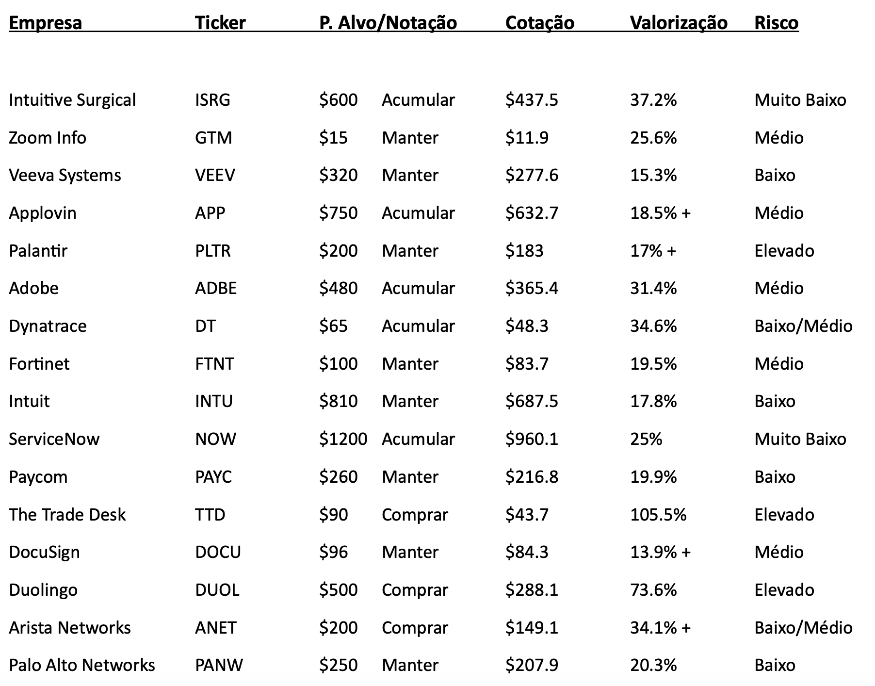 Duolingo, Appfolio e Palo Alto Networks aperecem como mais baratas, mas atenção que este gráfico não leva em conta as margens.