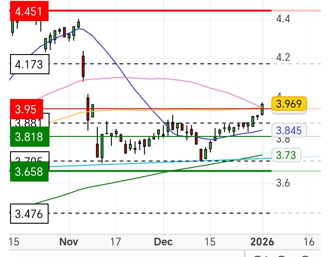 Estou a acreditar firmemente que o movimento que refiro vai até muito perto dos 4,50€ até meio do mês de fevereiro. Sempre são mais cerca de 10% e outros 10% já estão contabilizados desde meio de dezembro.