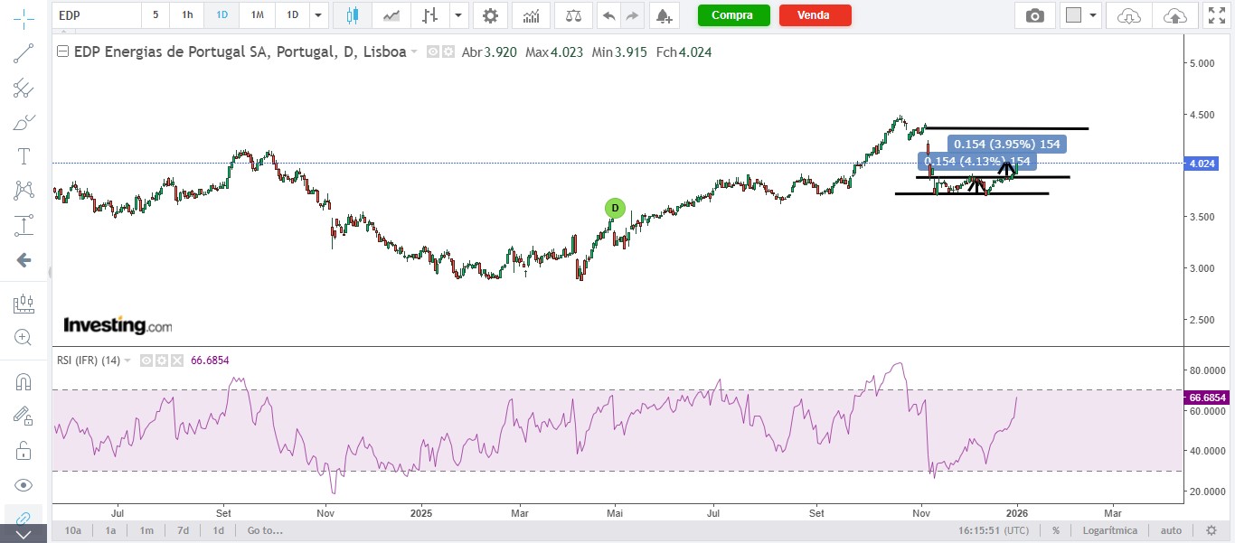 Claramente a tendência é de subida. Ao nível fundamental as contas de 2025 serão muito positivas face às contas de 2024. Último trimestre será expectávelmente bom com o registo das mais-valias das operações comunicadas aos mercado nos últimos meses e face à elevada produção hídrica registada neste trimestre por maior ocorrência de pluviosidade.