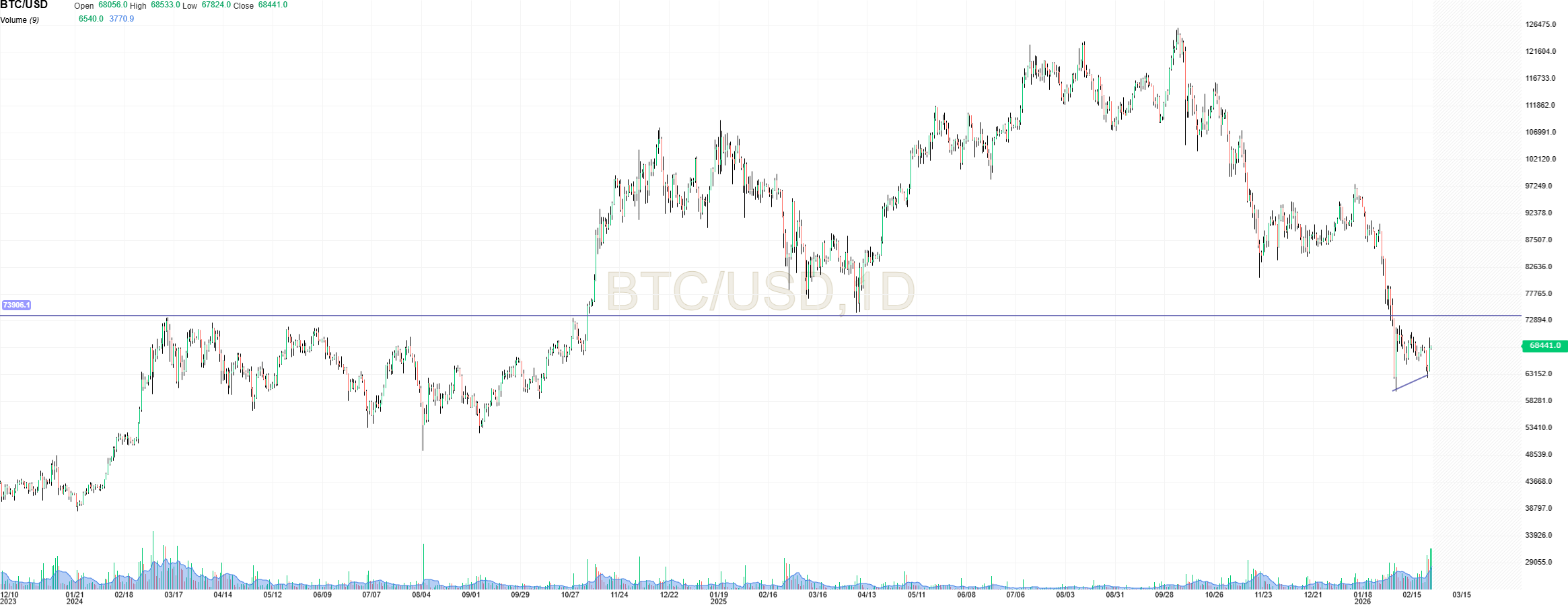 Neste momento está abaixo dos 70k, o suporte parece estar a ir pelos ares. Mas isto também é capaz de agora à tarde recuperar parte da tareia que está a levar.