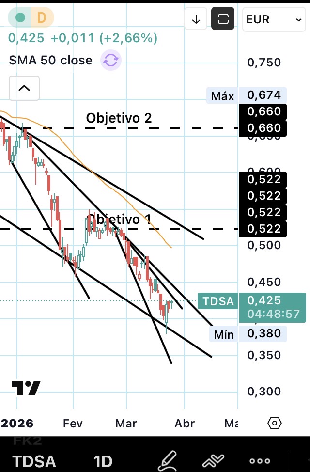 A TDSA também está muito próxima da média móvel, mas ao contrário da Egl, a TDSA não tem um histórico de subir depois de tocar na média móvel. Caso isso aconteça, será a primeira vez