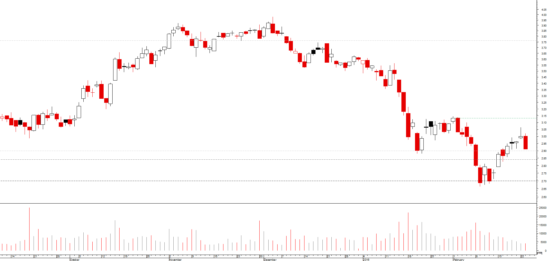 deste ponto de vista, um primeiro sinal de força por parte dos compradores será levarem a acção a fazer um primeiro alto mais alto, ultrapassando os 3.13 do início do mês; até lá é o bear market em toda a sua força