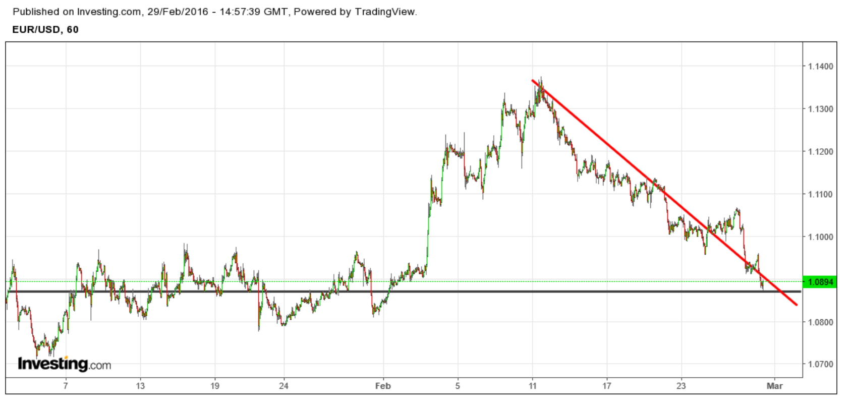 O Euro por acaso agora até está a subir 0.4% para 1.1045 e há pouco estava a 1.11. Não é garantido que desça automaticamente .