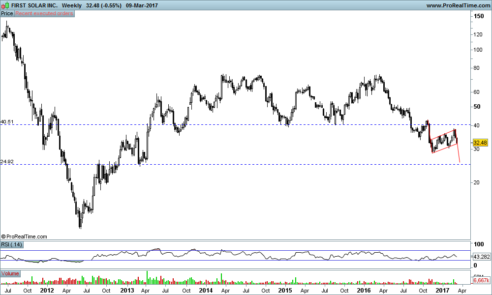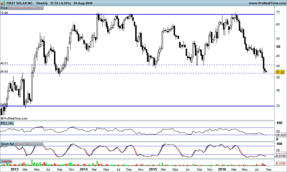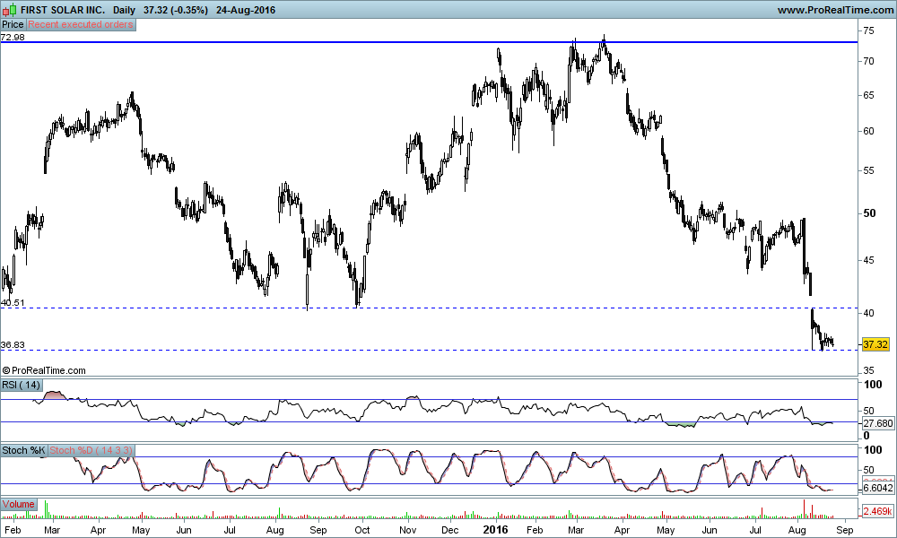 Hoje dei um tirinho neste titulo a $34,51. Perece-me uma empresa sólida e tem uma politica agressiva de I&D (cerca de 14% do Gross Profit), mais tarde ou mais cedo terá resultados desse trabalho. Penso que tem vindo a sofrer com o abrandamento dos incentivos às energia "limpas" nos EUA e pelo facto de o preço do petróleo estar mais baixo, o que tendencialmente poderá provocar uma menor urgência de investimento neste tipo de produção de energia. Na minha perspetiva esse caminho não terá retorno, o investimento em energias "limpas" terá que ser um investimento em massa e tudo leva a crer que é esse o caminho, esta empresa a par de outras empresas deste sector irão ter sucesso (sem euforias baseadas em suposições, como no inicio do século, mas agora com dados reais com muitos MW a serem produzidos por esta via).