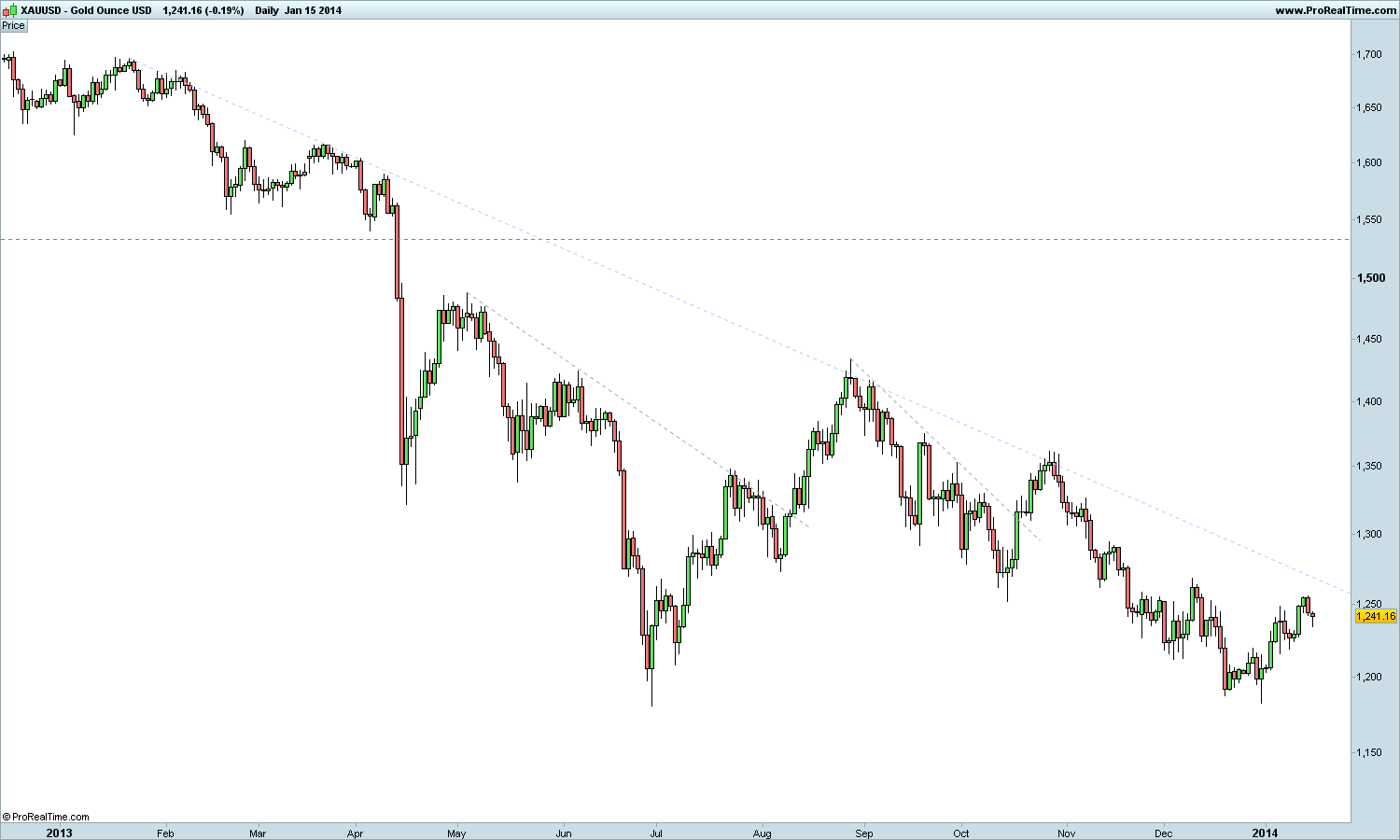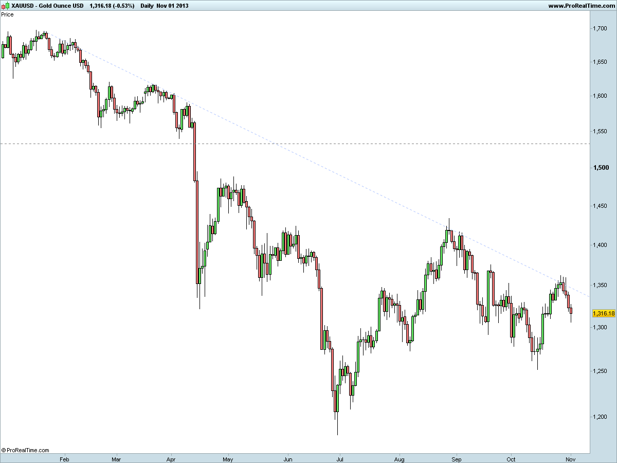 assim sendo, o ouro está com tendência descendente em todos os horizontes temporais à excepção do curto prazo onde ela é ascendente,embora quem esteja a negociar esta subida sabe que o faz contra a tendência dominante