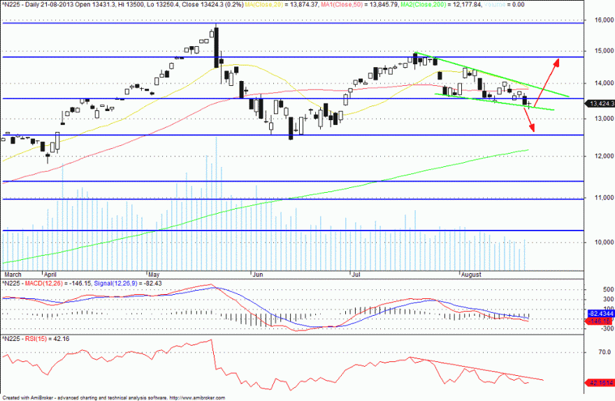 A cunha está lá e é das que diz que o nikkei pode arrebitar, mas ela só é activada acima dos 13750. A ver vamos.....