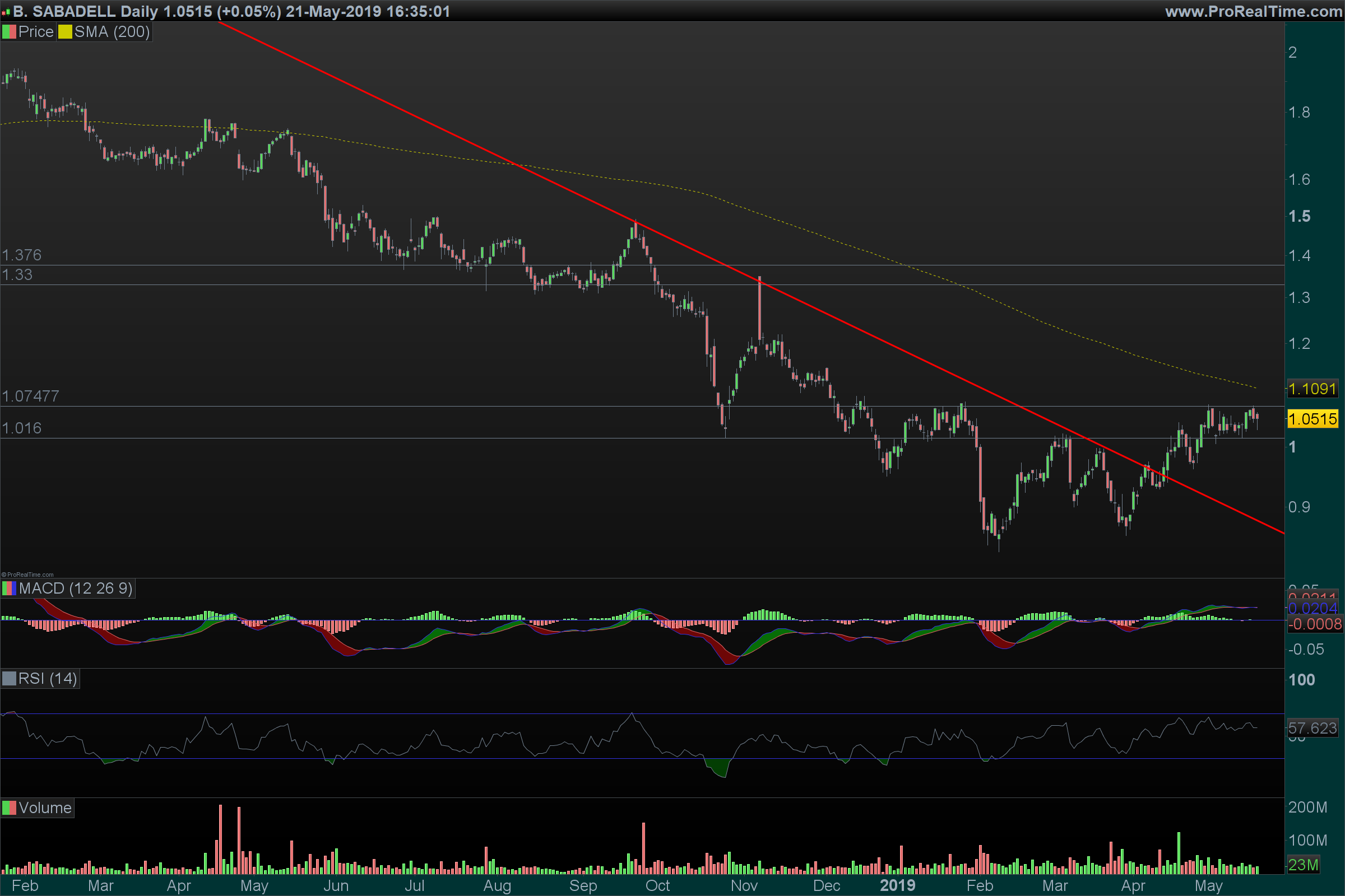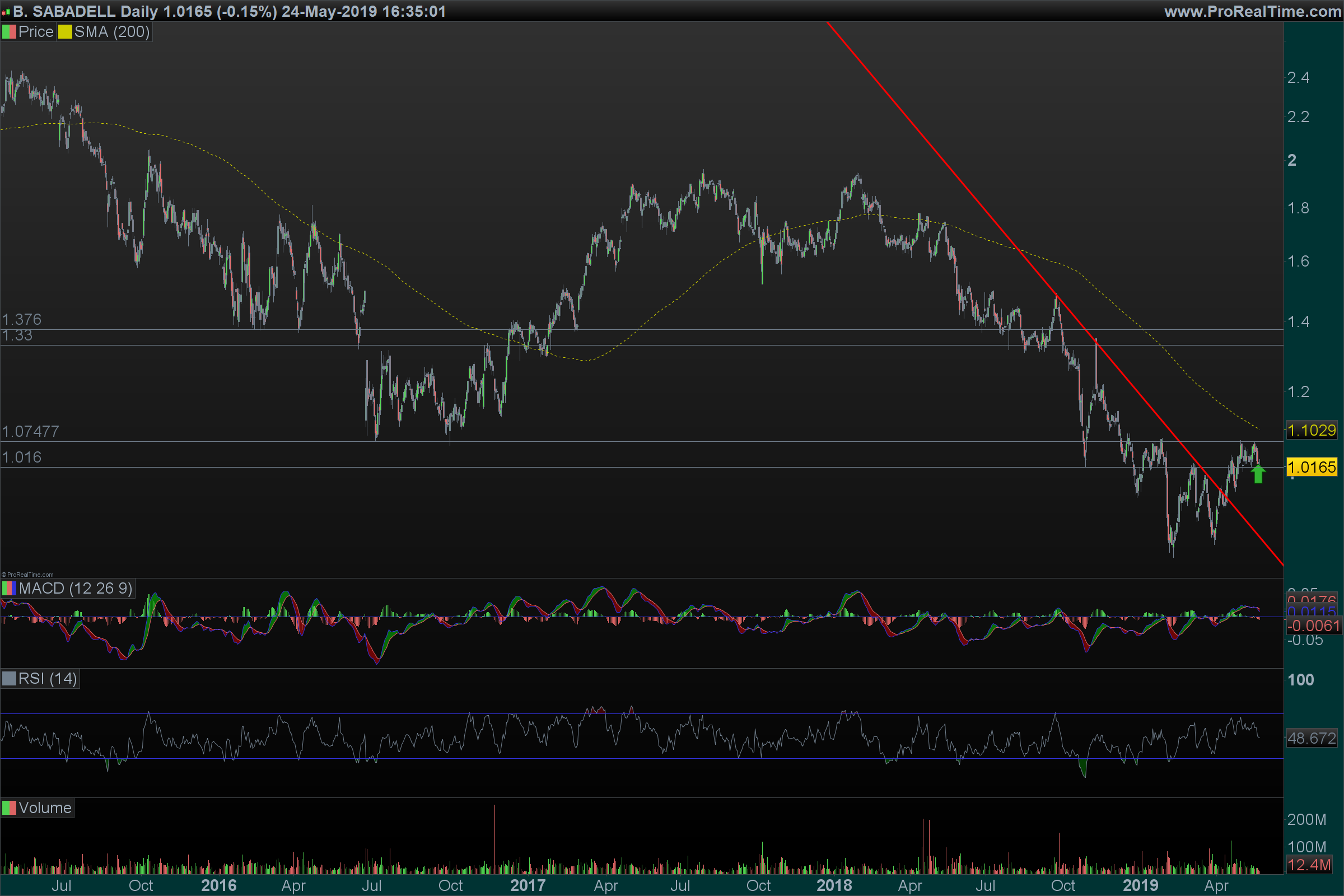 O banco Sabadell está num momento interessante, numa zona que representa o último suporte conhecido desta cotada.
