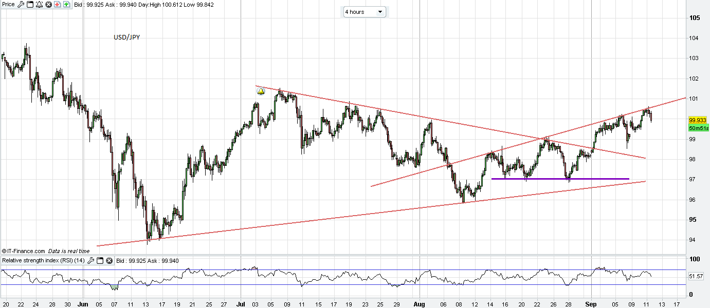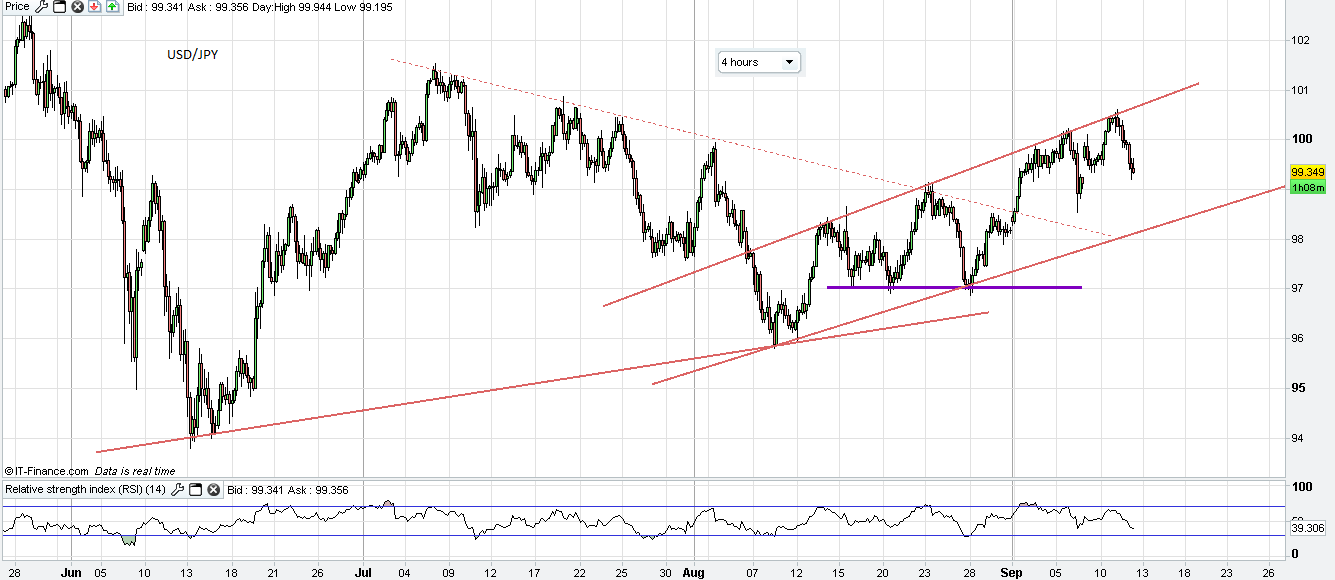 marciop, se traçar uma LTA no usd/jpy a passar nos mínimos de dia 8 e dia 28 de agosto, vai reparar que é praticamente paralela ao limite superior ascendente que tem traçado (canal ascendente de curto prazo)